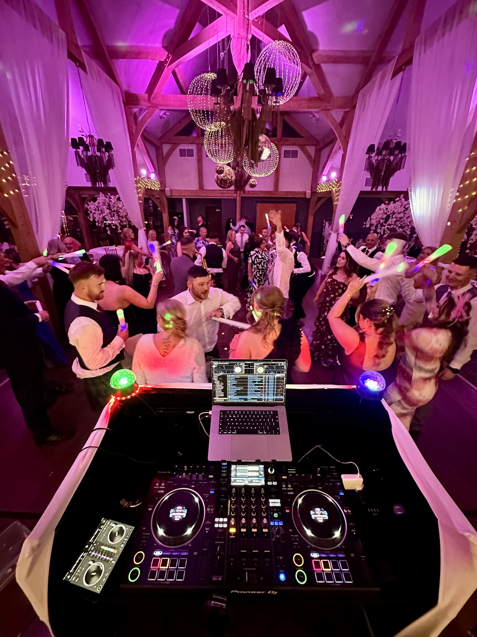 We invest heavily in our DJ hardware, sound system, lighting and DJ software. Our equipment specification Includes: Pioneer XDJ-XZ 4 Channel Serato & Rekordbox Mixer / Apple Mac Book Pro / Shure SM58 Dynamic Vocal Microphone / QSC K12.2 2000 Watt 12″ Speakers x 4 / Gigbar 2 – 4 in 1 DJ lighting System x 2 / Glitterbox Illuminate Globes x 4 / Serato DJ Software / Tidal Streaming service Integration.